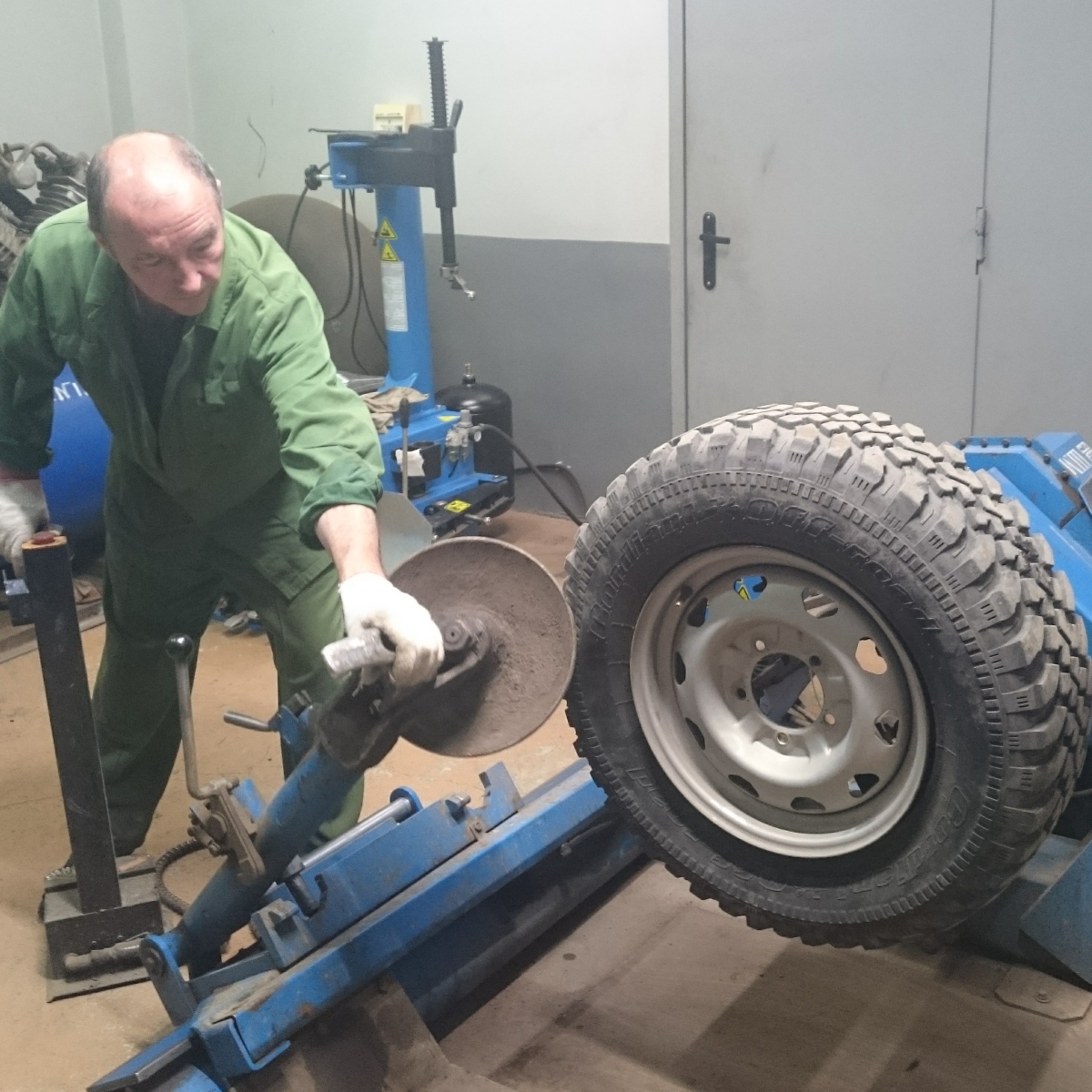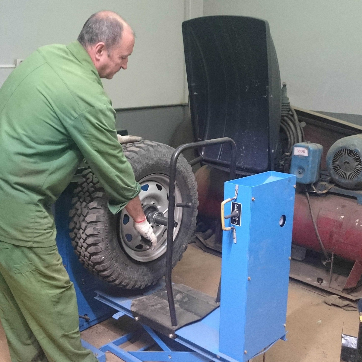 Монтаж и демонтаж шин производится на шиномонтажном участке ремонтной базы, балансировка колес легковых машин, грузовой техники и спецтехники.